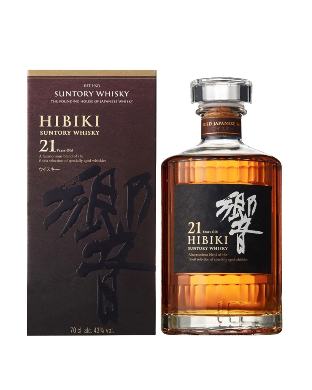 Hibiki 21 Year Old is a prestigious Japanese whisky celebrated for its complexity. This blend of carefully aged malt and grain whiskies, matured for at least 21 years, exemplifies harmonious balance and exceptional quality, earning numerous awards.