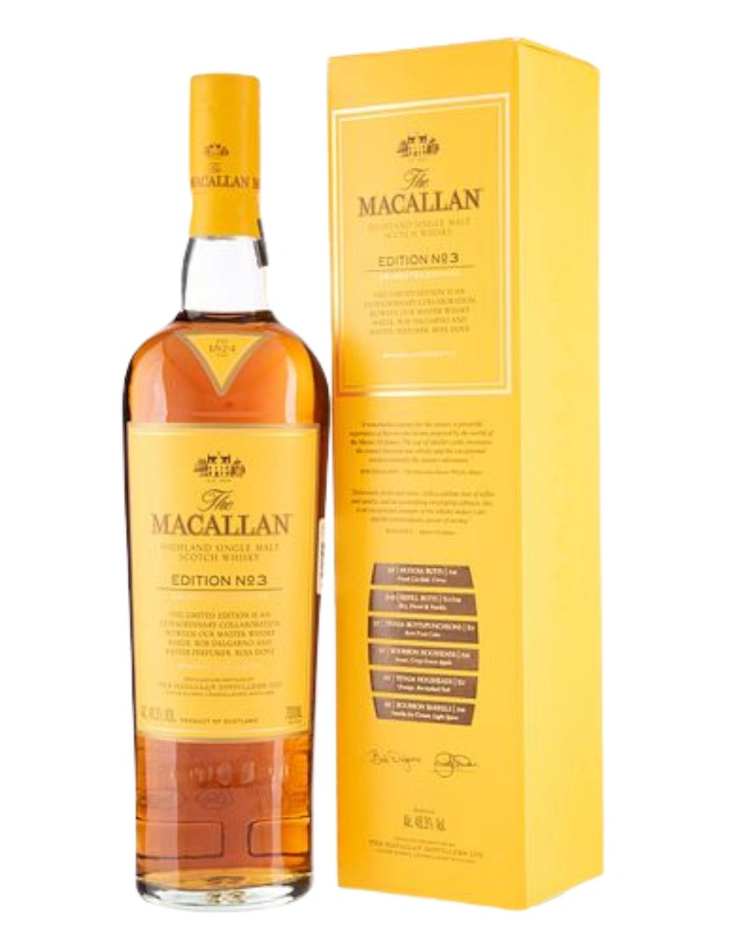 Unique combination of oak cask styles creates a limited edition expression. Edition No. 3 explores whisky-making transparency and flavors, uniting whisky and aroma with Master Perfumer Roja Dove's expertise to enhance The Macallan's experience.